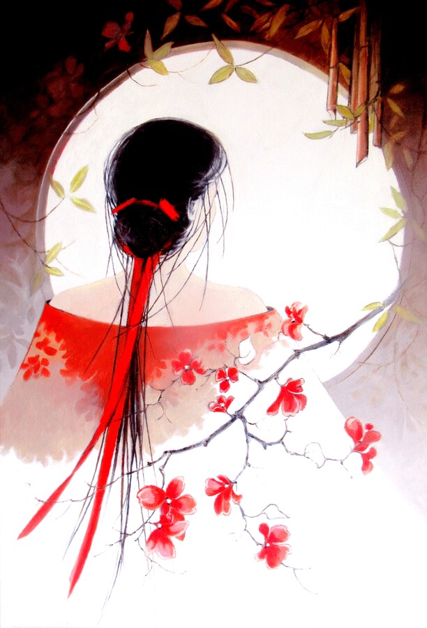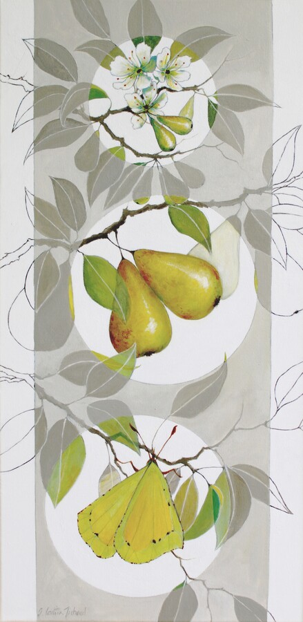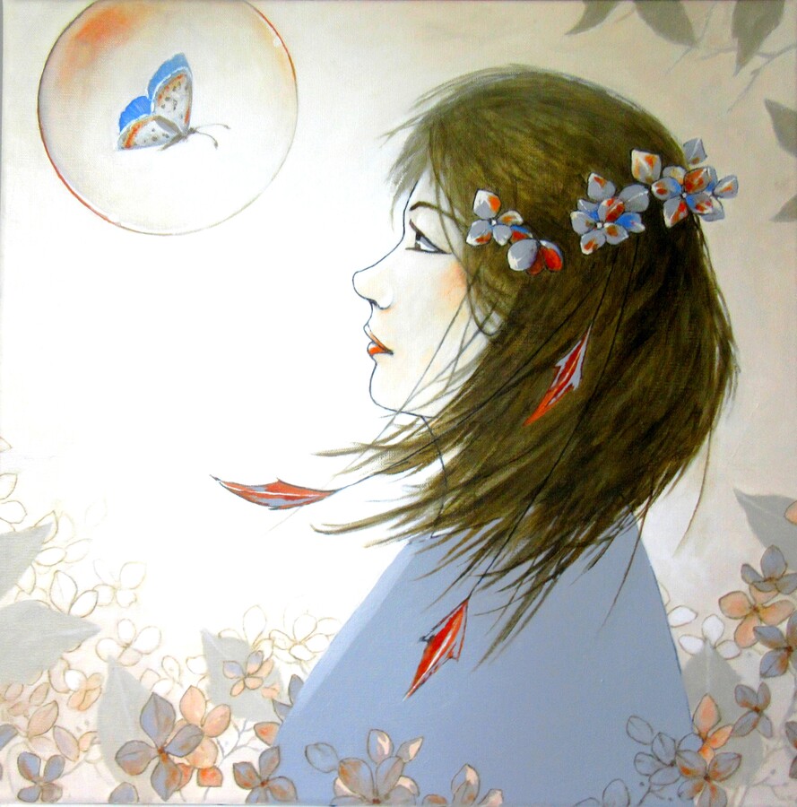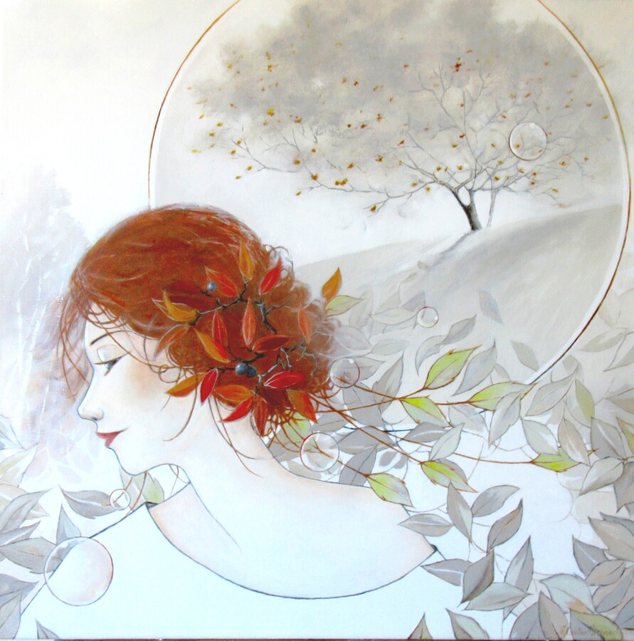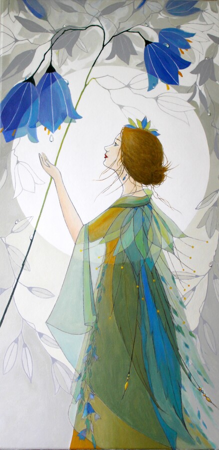 Jeune-fille, méditation,  50x73cm  -  2023  -  480€Flore,  50x73cm - 2021 - VENDULes 4 saisons,  printemps , 40x80cm - 2024 - VENDUEntre ciel et terre, 50x70cm - 2022 - 420€