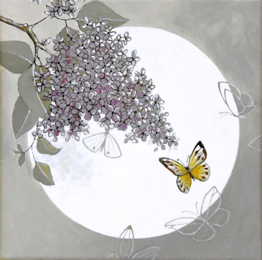 Fille du vent, 38x60cm - 2021 - VENDULilas,   50x50cm  -  2019  -  VENDUAprès la pluie, 40x80cm - 2024 - 420€Petite-matin zen II , 30x30cm  - 2024 - 80€